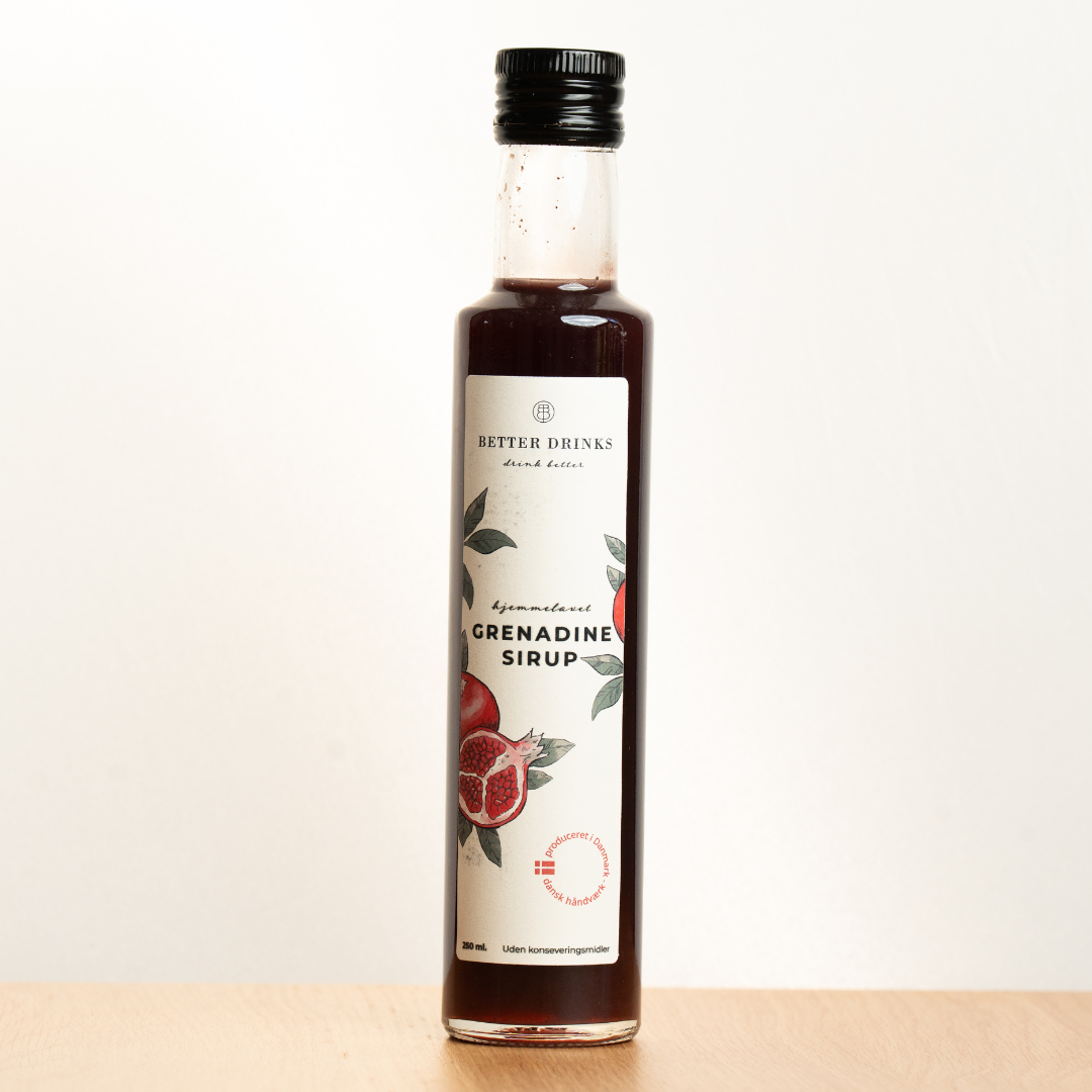 Vores Grenadine følger gamle cocktailtraditioner og bruger derfor økologisk græsk granatæblesaft som smagsgiver uden tilsætningsstoffer.